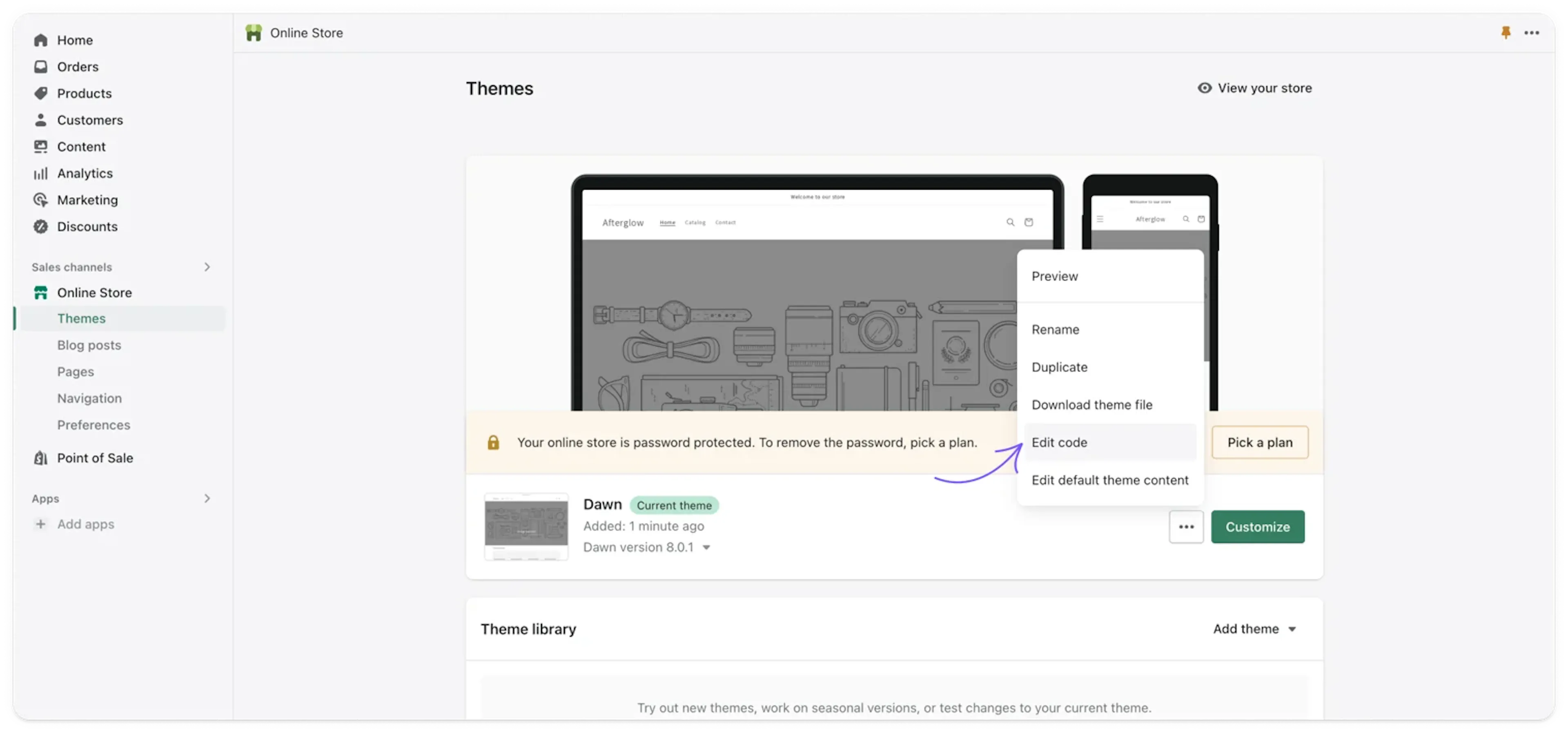 Copy and add the following Growify Pixel script to your theme.liquid file to start tracking view events.
